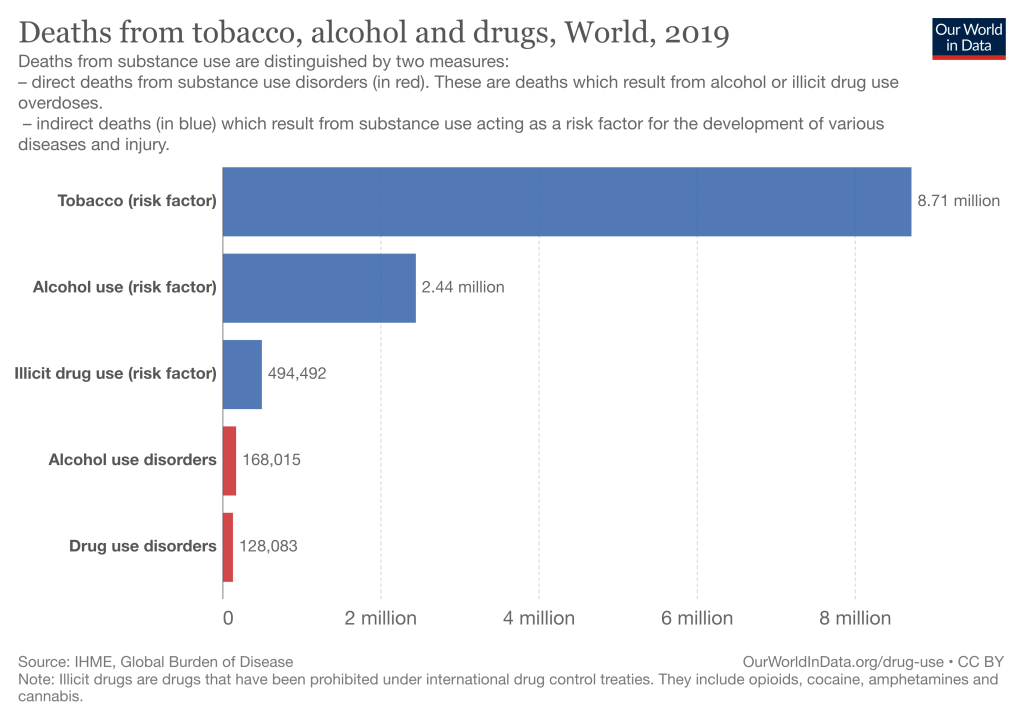 World wide, the use of alcohol is only overshadowed by the magnitude of deaths from smoking.