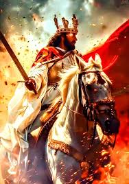 Revelation 19:11-13 “Then I saw heaven opened, and behold, a white horse! The one sitting on it is called Faithful and True, and in righteousness he judges and makes war. His eyes are like a flame of fire, and on his head are many diadems, and he has a name written that no one knows but himself. He is clothed in a robe dipped in blood, and the name by which he is called is The Word of God.”